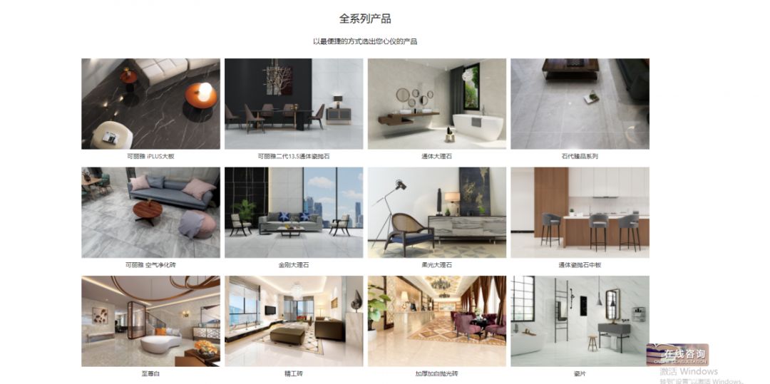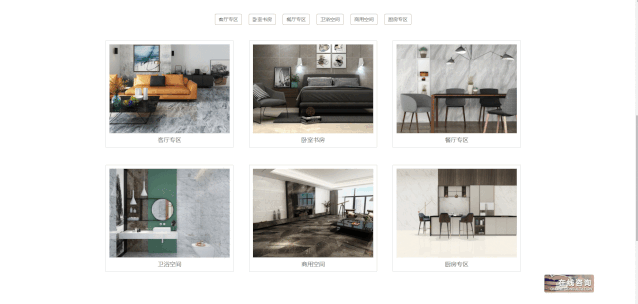 加勒比海石磚新官網,新增空間場景欄目,把各個空間場景進行區分,讓客戶迅速搜索到對應產品,進行720全景查看。