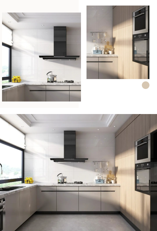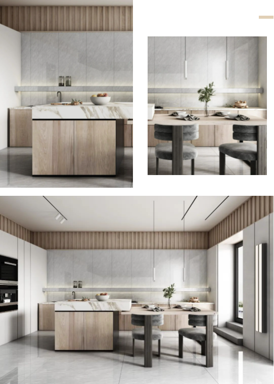 墻面通體瓷拋石中板馬特拉,清爽的色調既拓寬了廚房的空間感,一石多面又增添了些許靈動,在陽光照射下,與暖調木紋互相輝映,建立起空間與自然之間的聯(lián)系,讓每次下廚都成為期待。