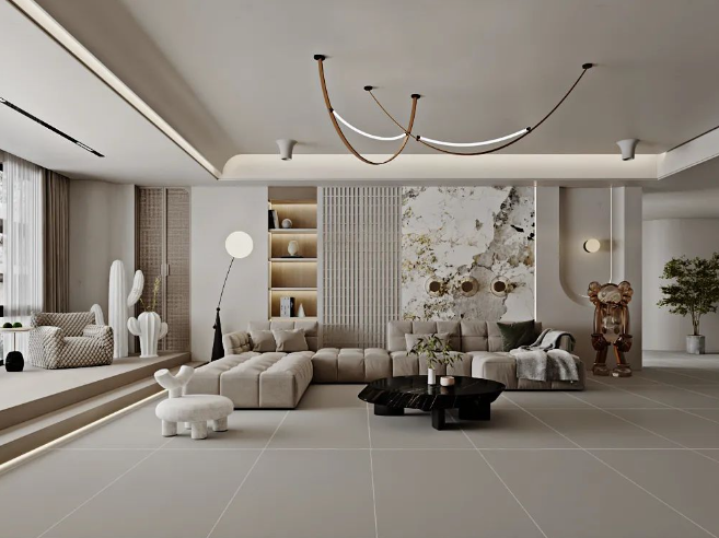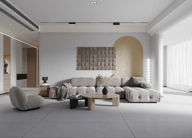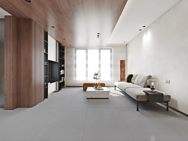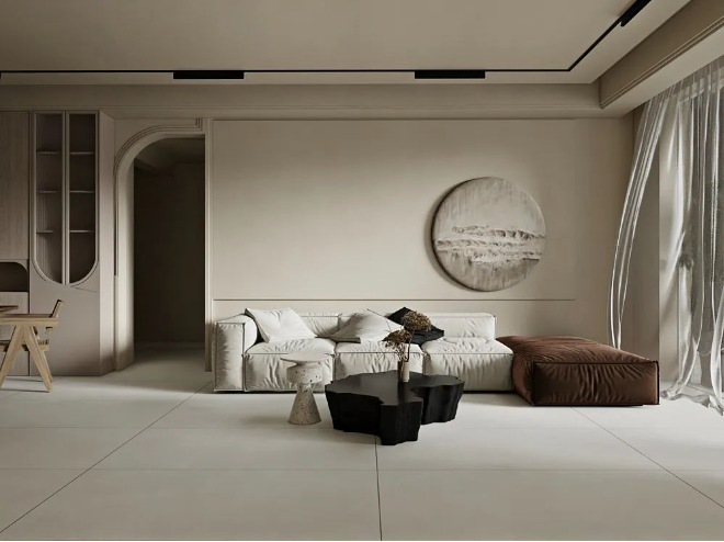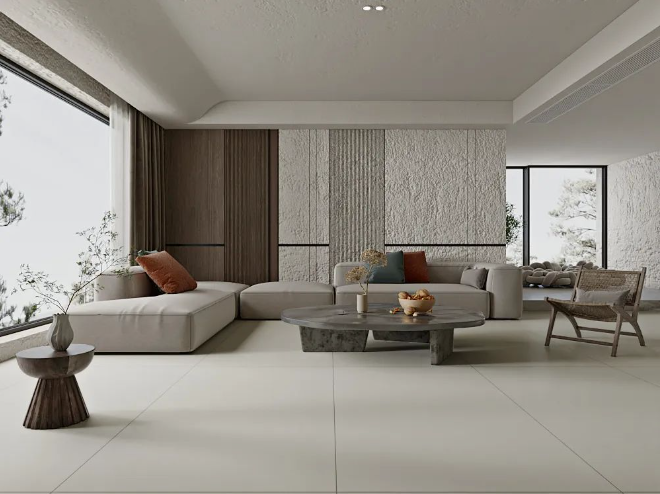 750x1500mm的大規格,三個不同釉面(保護精雕釉、保護釉、超細干粒)打造不同質感。在溫潤的肌理之上,傳遞出干凈有格調的極簡美學質感。