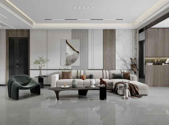 將知性優(yōu)雅的簡(jiǎn)素灰與溫暖木色相互搭配,簡(jiǎn)奢質(zhì)感呼之欲出,進(jìn)一步放大空間視覺效果,讓空間更顯大氣與優(yōu)雅。