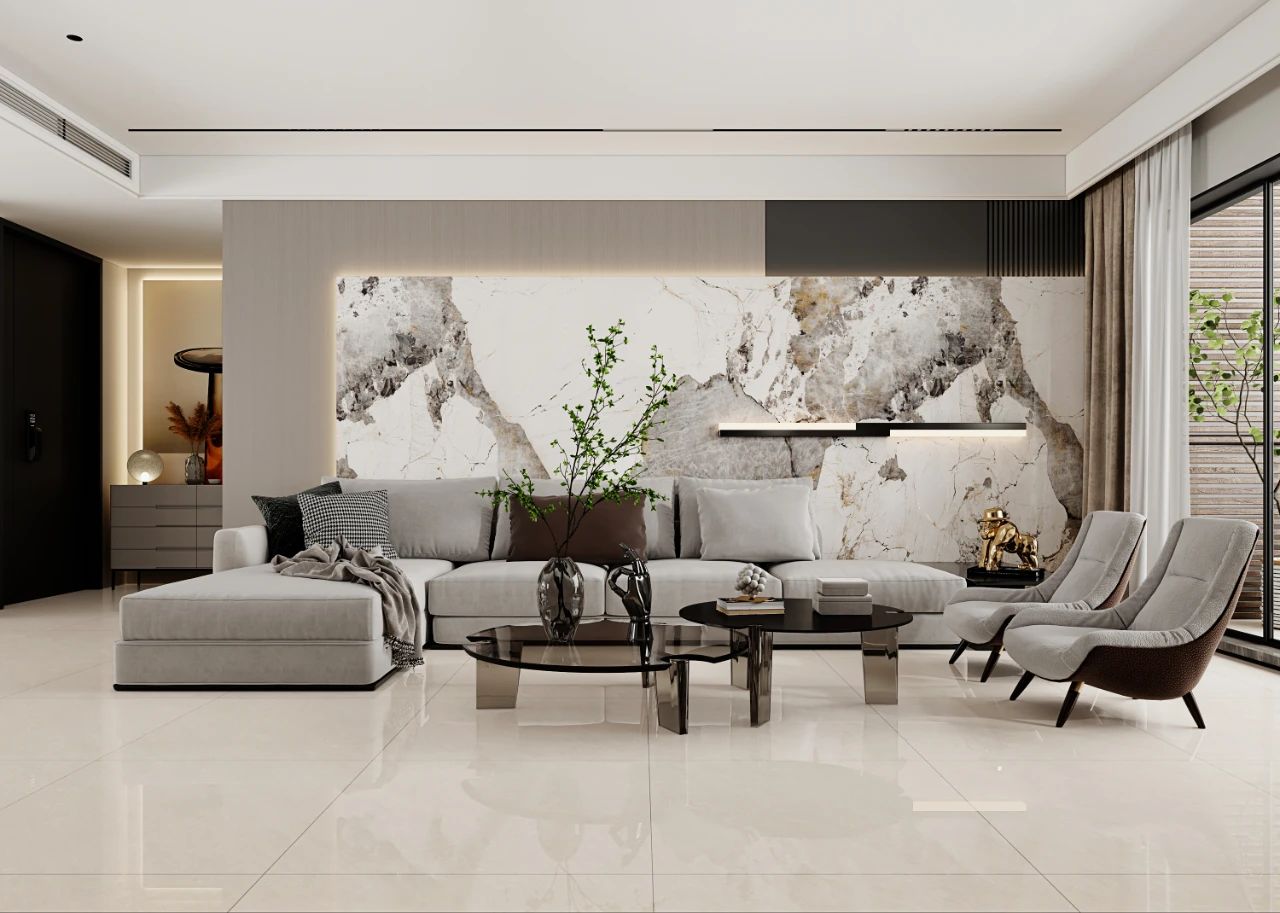 白理石紋背景墻猶如初晨的霧白