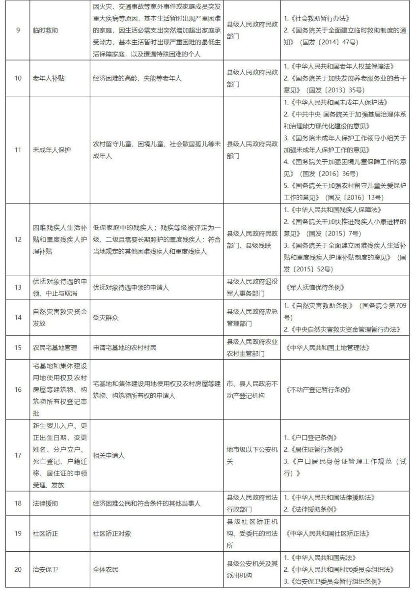 (九)警務(wù)和法律服務(wù)。做實農(nóng)村警務(wù)工作,健全完善聯(lián)防聯(lián)治機制。推動普法宣傳、人民調(diào)解、法律援助等服務(wù)全覆蓋,充分發(fā)揮村法律顧問作用。強化對社區(qū)矯正、社區(qū)戒毒社區(qū)康復(fù)、刑滿釋放人員幫扶救助和精神障礙社區(qū)康復(fù)服務(wù)。